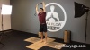 Next exercise is a standing side stretch so for this one I’m going to have you bring your feet about shoulder width distant and level one, we’ve got the arms overhead or sorry we’ve got the strap with the arms overhead, you can hold us about shoulder width distant again. We’re going to wrap the palms to face back like so the biceps wrap in me at my shoulders behind my body so if you look at me from the side my shoulders are not here like this I’m getting my shoulders back here like so and then think a big breath in here and then lean toward one direction now I’m going to tighten the left side of my body so notice that my oblique’s are tight, I’m not just leaving them out to dry and keeping them engaged and then keeping both legs engaged too, my hips are squeezing lightly toward one another as I inhale, I get taller as I exhale, I get deeper and this one I want to hold for thirty to sixty seconds, now if this is easy this is exactly what we didn’t intermediate you’re going to bring your hands together interlaced the fingers, point your index fingers and then work deeper into this like this so this is level three. This takes a little bit more mobility you’re going to get a better stretch in your shoulders though as a result just make sure that you can keep your shoulder somewhat down and that you don’t have to shove your shoulders way up here near your ears in order to get this stretch go and bring it back to the middle opposite side and by the way note on my foot positioning so when my feet are wider I can get deeper into this and I can utilize more core if the feet are closer together it’s a little bit easier I can’t get as deep into my side. Again interlace the fingers, wrap the biceps back extend your arms up breath and exhale toward the left tighten the whole right side of your body breathing up, exhaling deeper. So in this process of getting taller right getting more length and then getting deeper I want to pretend like I’m trying to get up and over something so I’m not just leaning into a wall it’s almost like I’m getting up and over a wall so I’m getting taller and then I’m getting deeper getting taller and then getting deeper and then holding it with control never pushing into my maximum range of motion immediately I’m just slowly breathing into it and that way I can get even deeper once I get to that maximum point go and bring it back to the middle with control and release your arms down. All right, so that’s the standing side stretch again we’re going to start at thirty seconds make our way up to sixty seconds, do that twice per day definitely in the morning maybe in the middle of the day, definitely in the in the morning and maybe in the middle of the day sixty seconds you can do it once or twice per day if you really want to do it at night go for it.