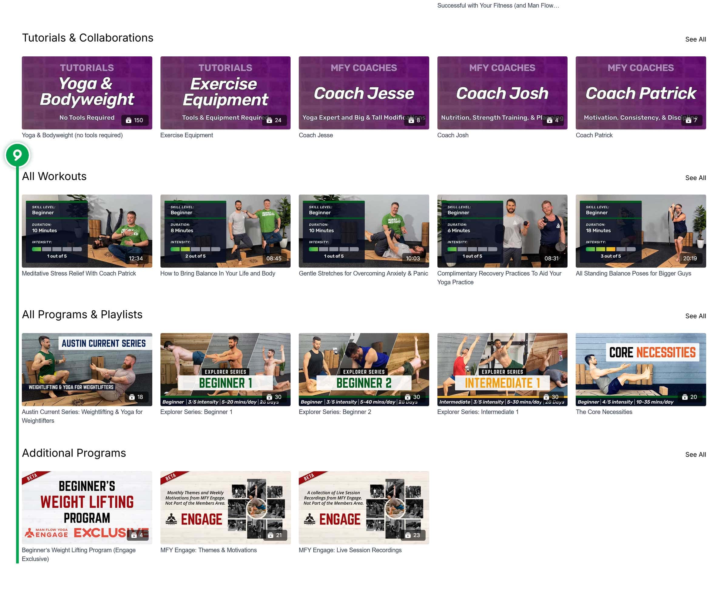 - All Workouts; All Programs & Playlists; Additional Programs